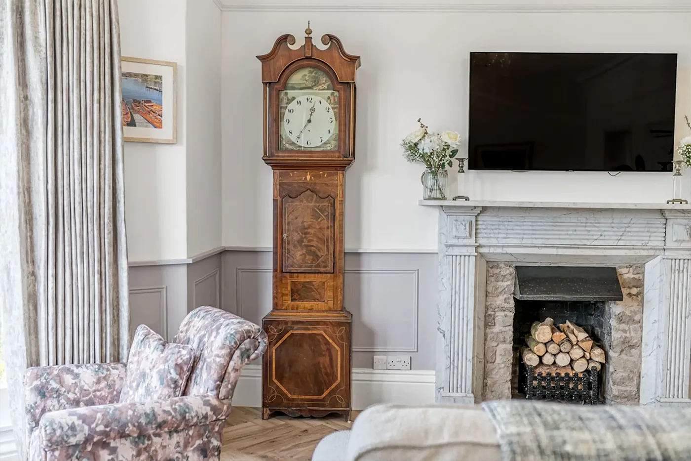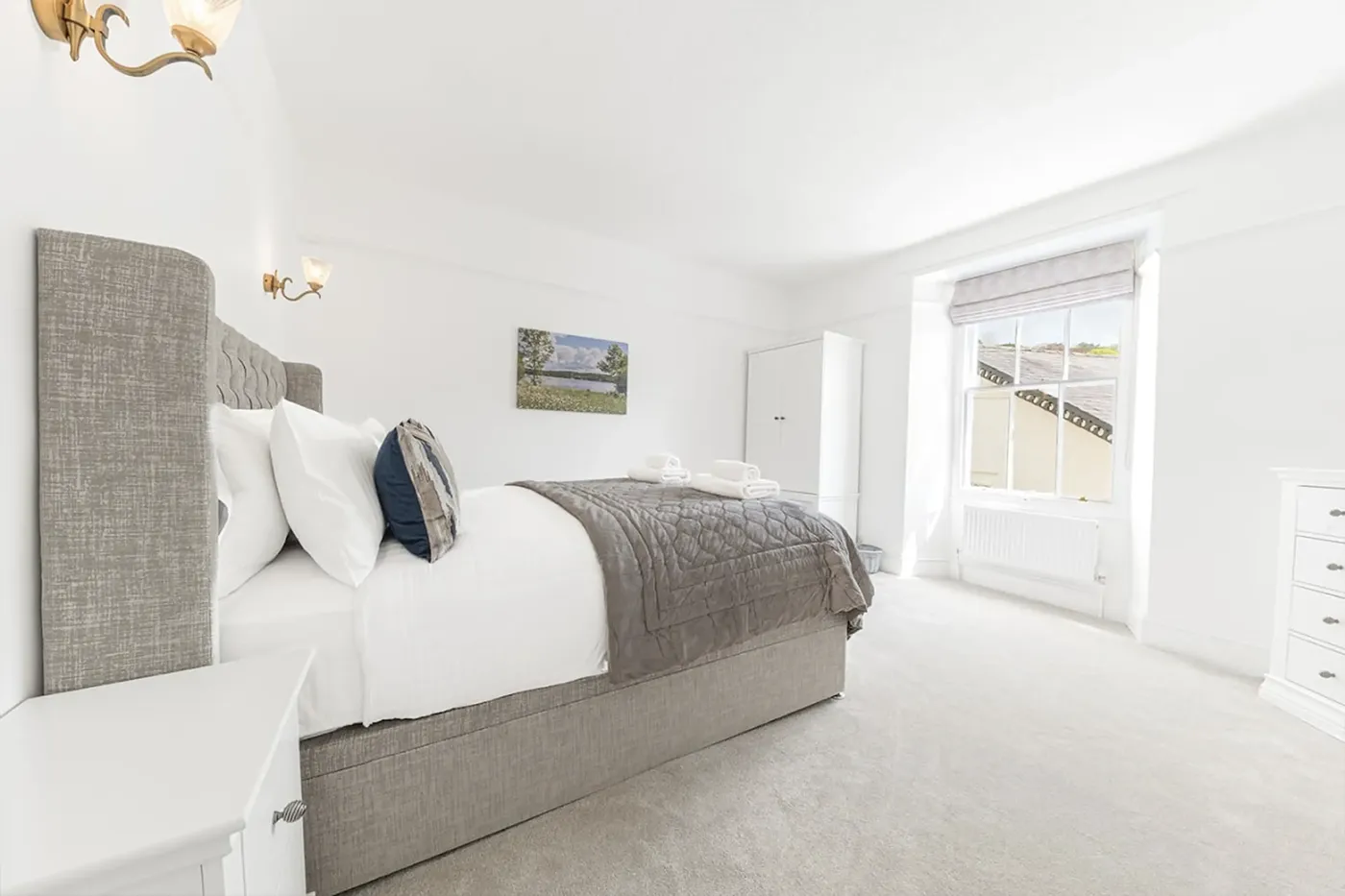 A modern shower room completes the offerings at this well-appointed and tranquil retreat, all beautifully decorated throughout in shades of grey against a crisp white backdrop.