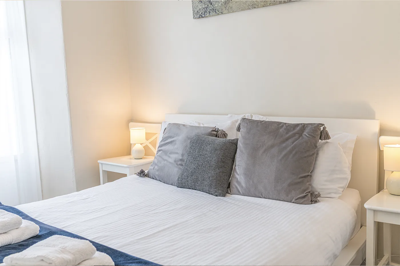 “This is a lovely light apartment with a good sized, brightly decorated living room with large windows. The main bedroom is great… spacious and stylish. The main bathroom is also excellent, especially the bath, which was a real treat.” – Susan, July 2024